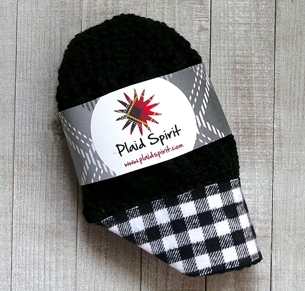 Reversible buffalo plaid hat; buffalo check hat with wood buttons and cables, crochet plaid hat, christmas gift for her, teen gift winter